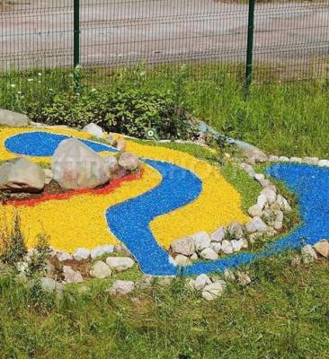 Декоративная щепа регулярно используется в ландшафтном дизайне для декорирования и мульчирования садов и участков. Сама щепа окрашена красителями на натуральной основе, которые не смываются водой и устойчивы к выгоранию на солнце. Сам цвет получается ярким и насыщенным. Средний срок службы декоративной щепы составлет приблизительно 2-3 года. После укладки на землю, со временем нижние слои щепы начинают понемногу перегнивать, улучшая состав почвы, но при этом свои декоративные свойства она сохраняет на протяжении всего срока службы. Сама же основа - это щепки хвойных пород деревьев фракции от 2 до 4 сантиметров. Чтобы добиться максимального мульчирующего эффекта и 100% отсутствия сорняков, рекомендуем вам укладывать коричневую декоративную щепу на подложку из геотекстиля или листвиничного гумуса. Оптимальная толщина укладки составляет 3-4 сантиметра. Купить цветную коричневую щепу можно в мешках объемом 60 литров, цена зависит от количества - чем больше объем, тем ниже цена. 60 литрового мешка при указанной толщине засыпки хватает на 1 квадратный метр территории.